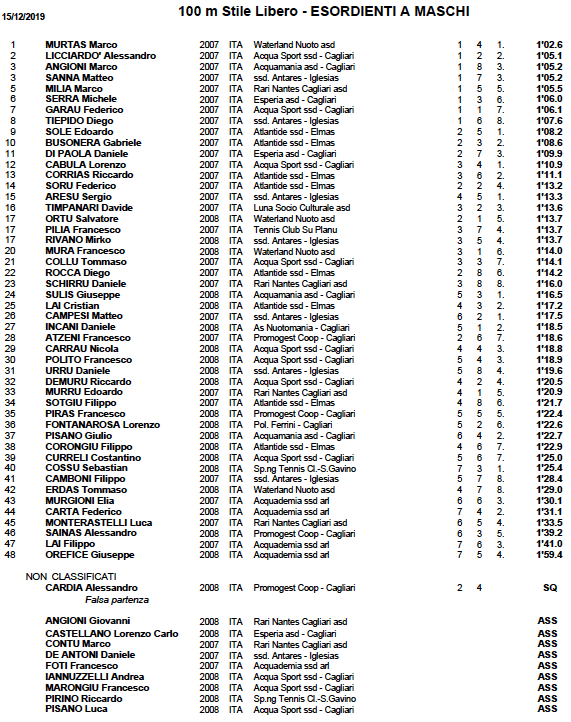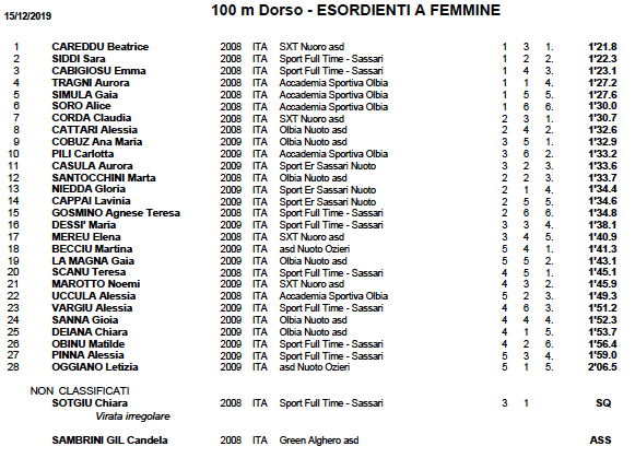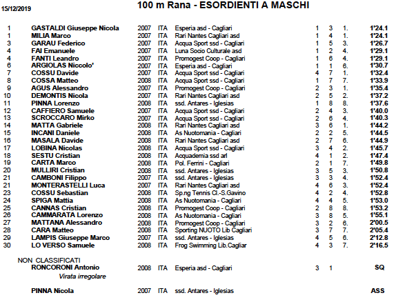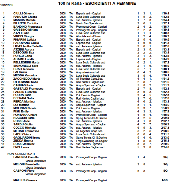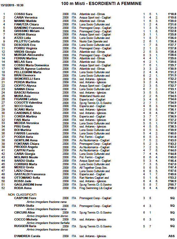 Purtroppo per le restanti Società, Air Sporting Club, Polisportiva Esperia Cagliari, Frog Swimming – Cagliari, ASD Green, Centro Nuoto Geovillage, Rari Nantes Cagliari, ASD Tennis Club Su Planu, Sport Full Time Sassari, SXT Nuoro e Waterland Nuoto non sono riuscito a reperire comunicazioni ufficiali tra i vari siti ufficiali e pagine social.